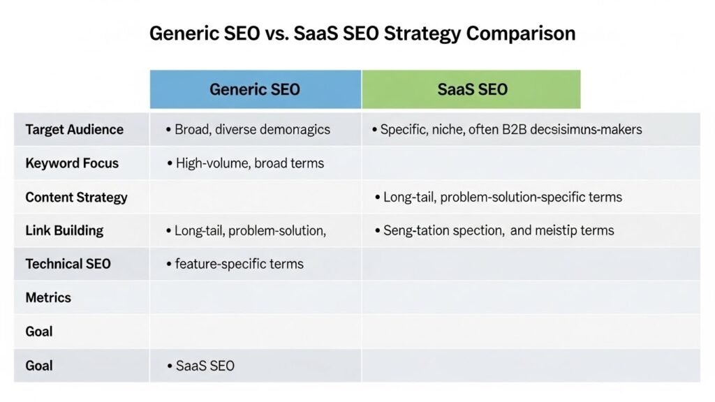 A SaaS SEO agency focuses on long B2B sales cycles, subscription revenue models, and product-led growth. Unlike regular SEO agencies that prioritize traffic volume, a SaaS SEO agency prioritizes qualified leads, conversions, and CAC reduction.